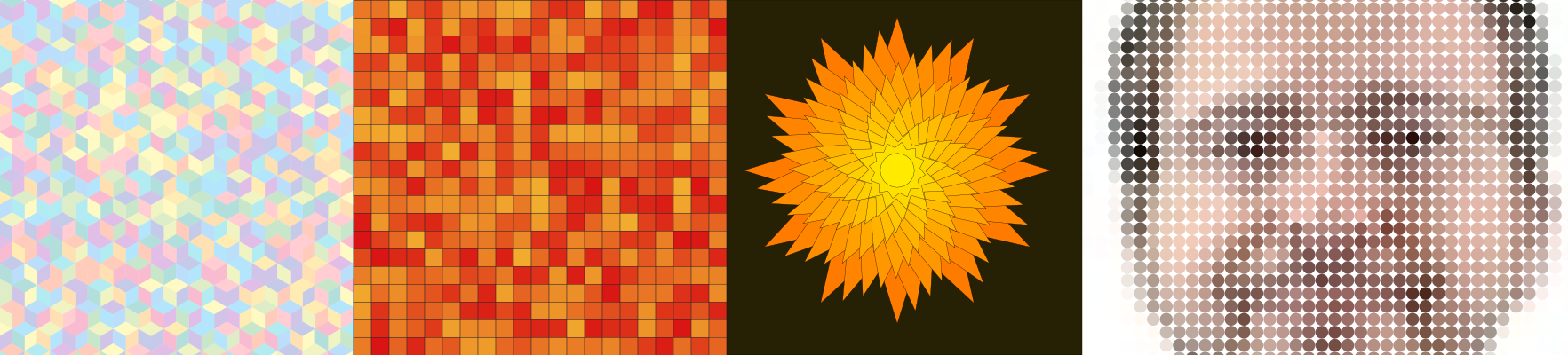 - il est codé en Python, permettant de produire des SVG complexes, en utilisant les bibliothèques existantes (numpy, pillow...) même si l'idée est qu'il soit sans aucune dépendances (si ce n'est celles de python, comme math ou random...)