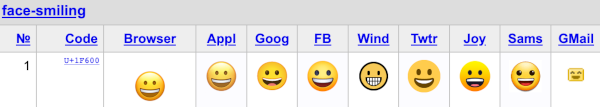 Muni de ce code, les navigateurs et matériels sont libres de représenter ce smiley selon leurs préférences.