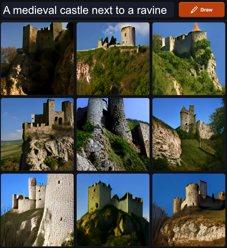 Craiyon (oh, avec AI dedans..), ou "Dall-e Mini". C'est le petit frère du précédent, mais sans inscription, sans limitation (à priori), plus lent, avec de la pub...