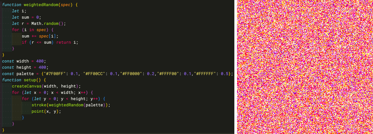 Le choix de la couleur dépend juste... d'un random... pondéré avec les valeurs de la palette de couleur.