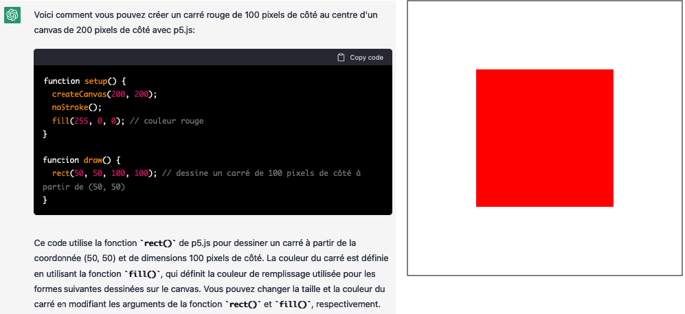 Au bout de quelques secondes, notre IA nous donne ce code (avec à droite le résultat... j'ai juste ajouté une bordure pour mieux voir le canvas)