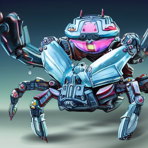 Donc : "A crab which is mechanized, highly detailed with transformers art style and visuals".