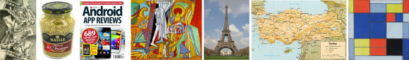 J'ai donc installé l'appli et, tel un gosse, me suis mis à scanner tout ce qui se trouvait sous la main. Une gravure de Maurits Cornelis Escher, une bouteille de vin, un pot de moutarde, une revue... sans faute, Goggles trouve. Bluffant. Bon, pour la moutarde il n'a trouvé que le logo Maille (mais m'oriente vers la boutique la plus proche). Mais sur la revue, il m'indique non seulement le titre de la revue, mais également la marque et le modèle des deux téléphones en photo sur la couverture...