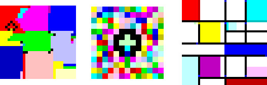 Piet est donc un langage dont les programmes sont des images matricielles inspirées des travaux du peintre... J'ignore comment ça marche (je n'ai pas creusé) mais voici le code source de quelques programmes: